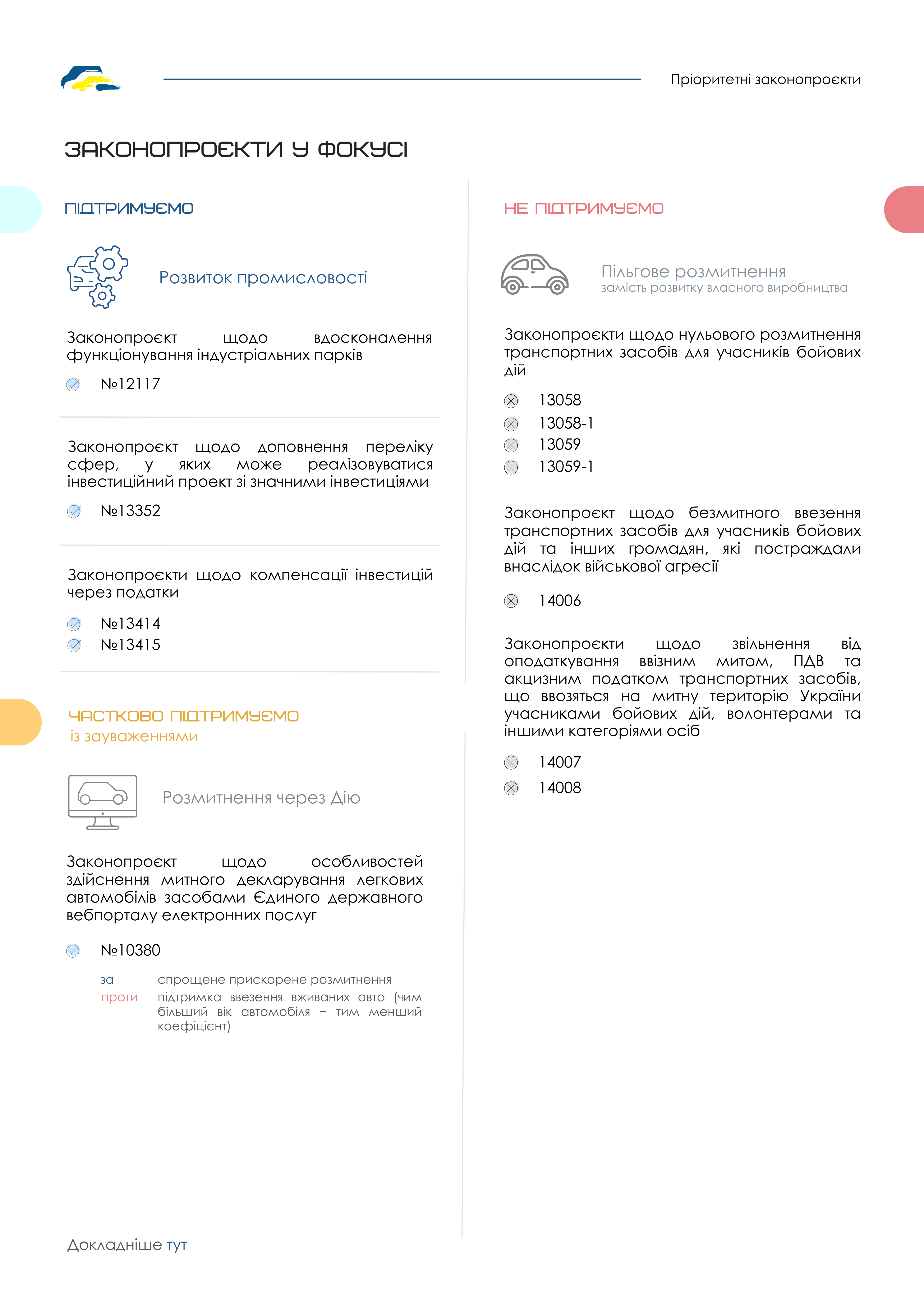 Федерація автопрому України підготувала список законопроєктів, які стосуються учасників автомобільної галузі і знаходяться у фокусі уваги станом на початок 2026 року.