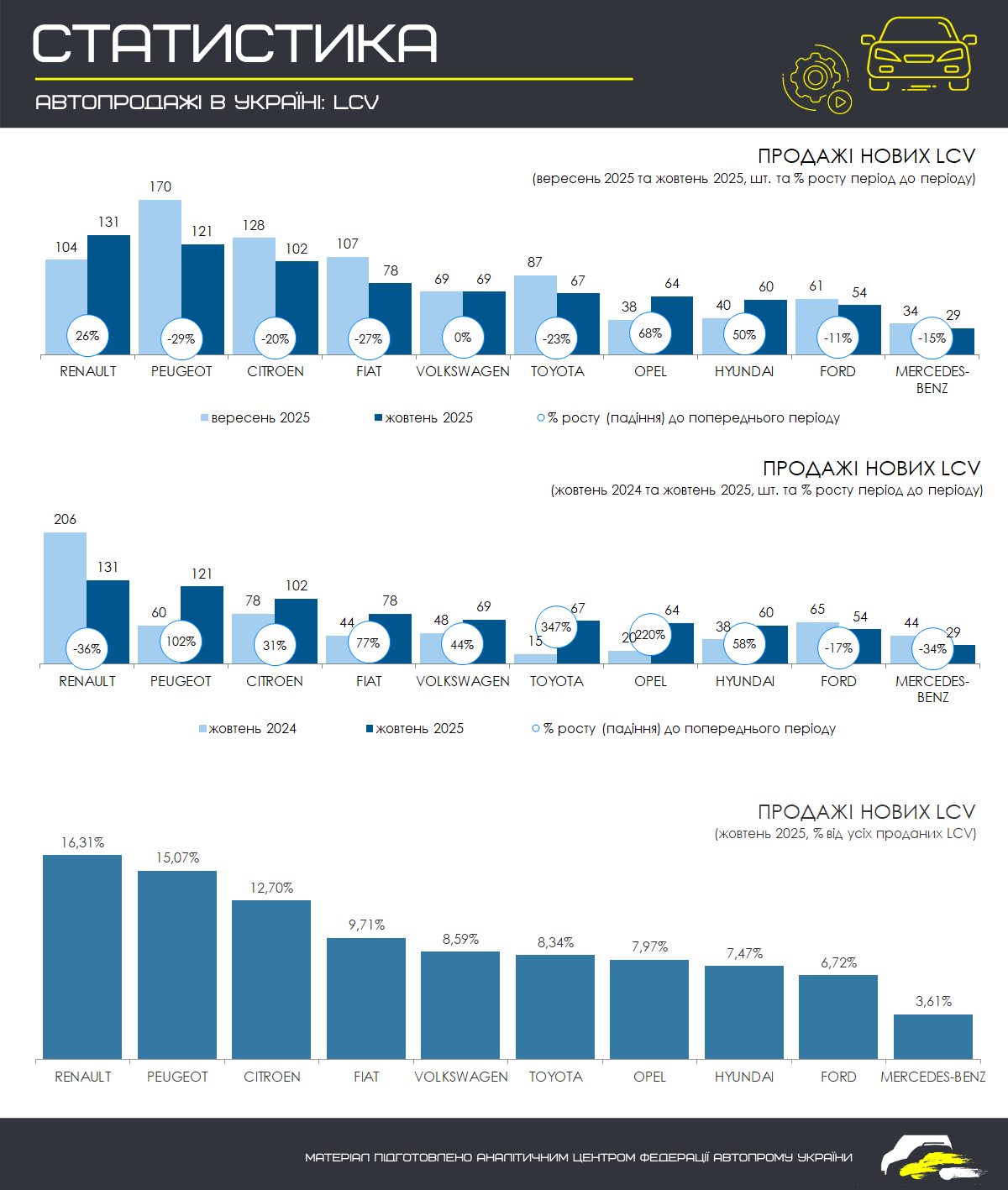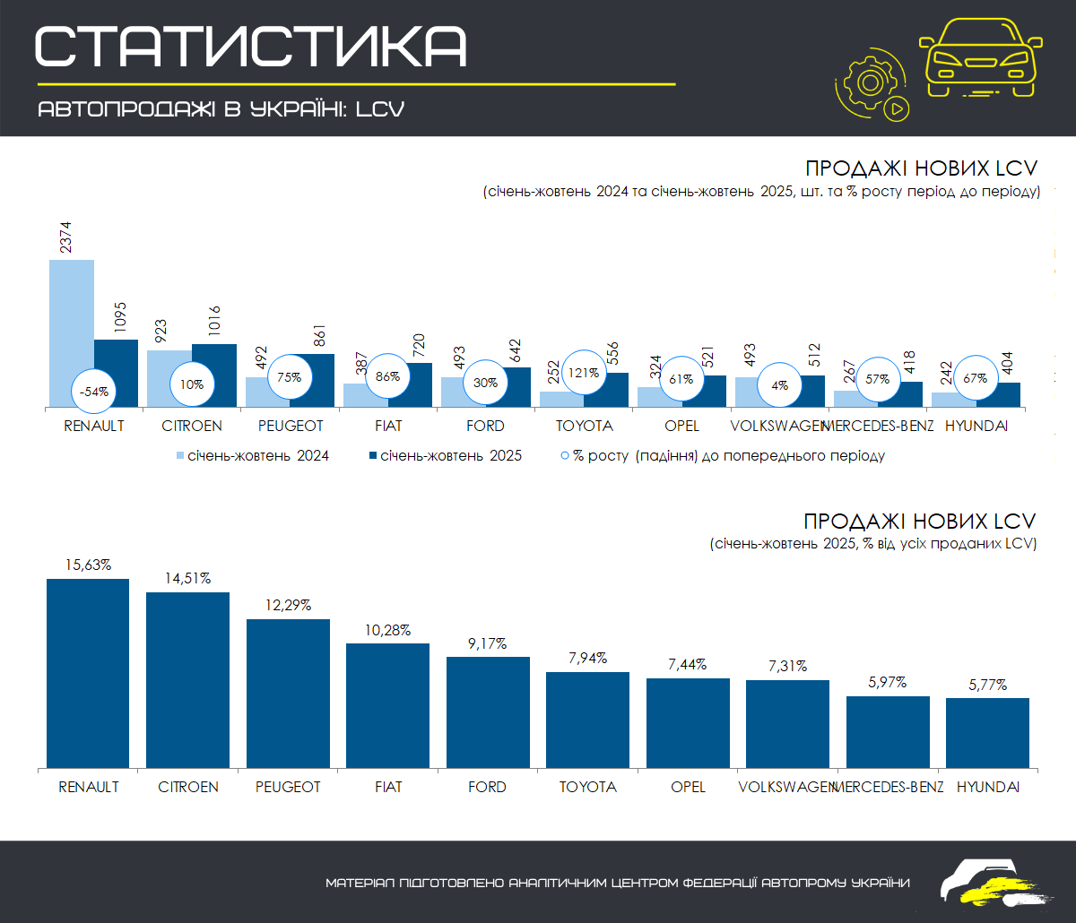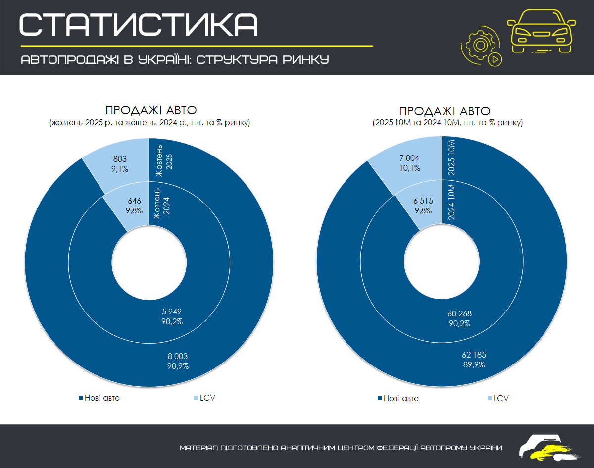 Отже, у жовтні український авторинок зріс на 34,5%, у порівнянні з минулим роком Зростання було +18,7% і у порівнянні з вереснем. Таким чином, за 10 місяців український ринок вже перебуває у плюсовій зоні (+3,18%) і впевнено рухається до ще більш результативних місяців кінці 2025 року.